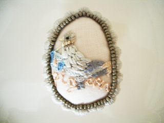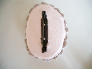 首にお手紙を下げた、伝書鳩のブローチです。 裏面はレザーでできています。 裏地のお色は変更になる場合があります。 ブローチピンをヘアゴムに変更することできます。 ご希望の場合オーダーの際お申し付けください。