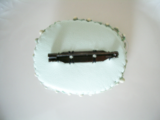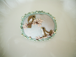 桜の木に集うすずめのブローチです。 裏面はレザーでできています。 裏地のお色は変更になる場合があります。 ブローチピンをヘアゴムに変更することできます。 ご希望の場合オーダーの際お申し付けください。