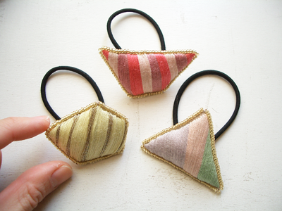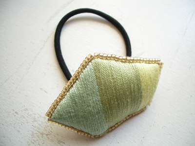 糸はコットン(金色糸はポリエステル)、縁はゴールドのグラスビーズです。