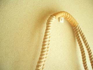 ロープは紅茶で染めていて、中央に牛革の持ち手が付いたワンショルダーになります。