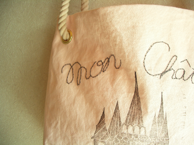 プリントはハンドプリント、文字は手刺繍なので、